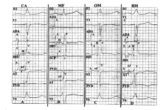 Los potenciales de los haces atriofasciculares y atrioventriculares largos pueden registrarse a nivel del anillo tricuspídeo, lejos del nódulo AV. Ellos permiten una localización exacta de estos haces para su ablación exitosa.