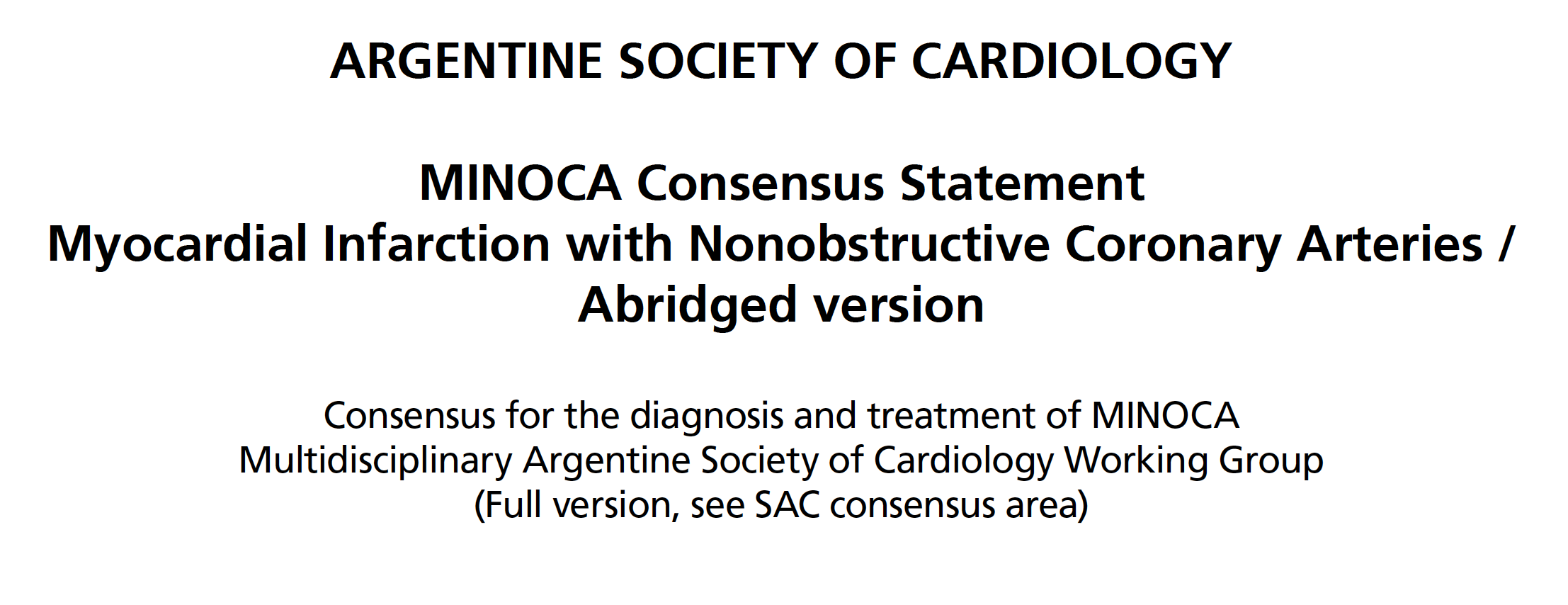 Kaski JC. Documento de consenso de MINOCA: Un punto de inflexión en el diagnóstico y tratamiento de una afección intrigante. Rev Argent Cardiol 2021;89:491-493. http://dx.doi.org/10.7775/rac.es.v89.i6.20455