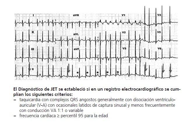 Conclusiones: La JET congénita es una taquicardia potencialmente grave en los primeros meses de vida, pero con alta tasa de remisión espontánea a largo plazo.