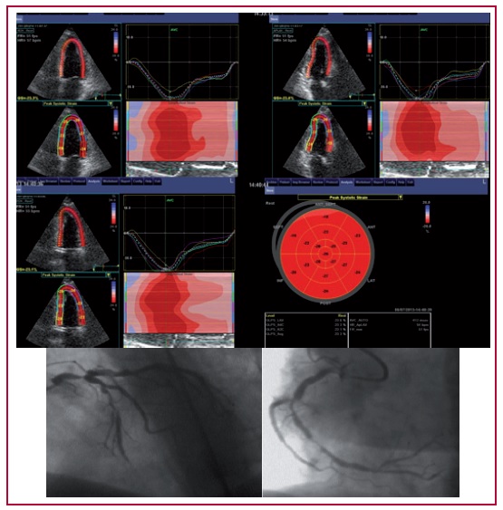Conclusión: El strain longitudinal bidimensional no permitió predecir el resultado del eco estrés ni tampoco la presencia de enfermedad coronaria significativa en los pacientes que fueron sometidos a cinecoronariografía invasiva.
