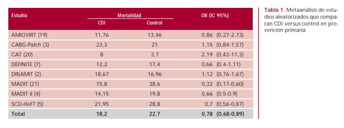 Todos los pacientes con deterioro severo de la función ventricular (fracción de eyección < 35%) deben recibir un cardiodesfibrilador implantable