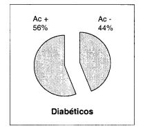La presencia de IgG-AR fue mas frecuente entre los diabeticos (56,3% versus 8,0%, p <0,001). Asimismo, las alteraciones de VFC fueron mas frecuentes en pacientes DM2 (54,2% versus 4,0%, p < 0,001), como tambien las arritmias ventriculares (43,7% versus 4,0%, p < 0,001). La positividad IgG-AR se asocio con DM2 (rS = 0,48, p < 0,001), con la presencia de AV (rS = 0,26, p < 0,03) y con MAU positiva (rS = 0,38, p < 0,001). Tambien las AV se asociaron con MAU (rS = 0,44, p < 0,001). En el analisis multivariado, la presencia de IgG-AR se asocio con DM2 (OR = 10,4, p = 0,006) y de manera limitrofe con MAU+ (OR = 4,2, p = 0,06);