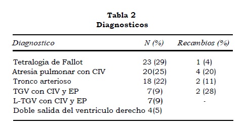 Se evaluaron 79 pacientes a quienes se les coloco un homoinjerto en posición subpulmonar entre marzo de 1991 y marzo de 2001, con un seguimiento mayor de 12 meses.