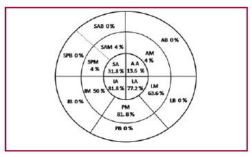 En la población estudiada con miocardio no compacto predominó el sexo femenino y se observó menor peso e índice de masa corporal en relación con los grupos comparados y el síntoma preponderante fue la disnea. El electrocardiograma mostró ritmo sinusal con trastornos de conducción y arritmia ventricular repetitiva. El eco transtorácico mostró diferentes grados de disfunción ventricular izquierda sistólica y diastólica con áreas de miocardio no compacto predominantes en los territorios medial y apical de los segmentos inferior, posterior y lateral, en algunos casos complicados con trombos intraventriculares y ocasionalmente asociados con fístulas coronarias.