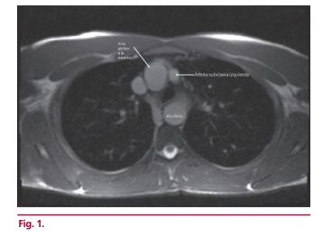 Arco aórtico derecho con subclavia izquierda aberrante que simula un doble arco aórtico