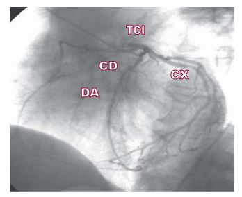 Nacimiento anómalo de la arteria coronaria derecha a partir de la descendente anterior