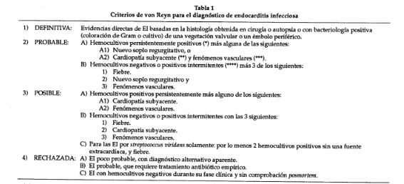 Analizar y comparar, en casos comprobados de endocarditis infecciosa, la sensibilidad diagnóstica de dos clasificaciones, la de von Reyn y colaboradores y la de la Universidad de Duke .