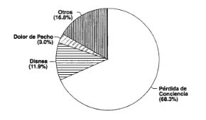 El tiempo medio de llegada fue de tres minutos . De 1.007 pacientes reanimados, 605 eran varones con una edad promedio de 65 años (± 26 años) y 402 mujeres con una edad promedio de 69 (± 17 años). Fueron divididos en dos grupos : el grupo I, constituido por 296 pacientes (29,4%) que fueron reanimados exitosamente, y el grupo II, formado por 711 pacientes (70,6%) que fallecieron pese a las maniobras de resucitación cardiopulmonar . La edad promedio del grupo I era de 53 años y la del grupo II 61 años . Entre las mujeres se recuperó satisfactoriamente el 35% frente a un 25,3% de los varones . Se observó una curva de distribución bimodal en la hora de presentación del paro cardiorrespiratorío con picos a las 10 y 20 horas respectivamente .
