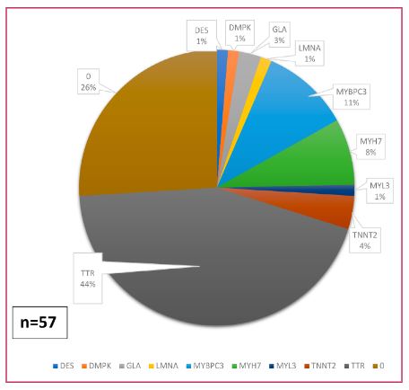 Material y métodos: Se estudiaron en forma prospectiva 102 pacientes con sospecha de miocardiopatía hipertrófica (MCH) familiar, de los cuales 70 constituían casos índices, de una cohorte ambispectiva de pacientes con miocardiopatías controladas en un hospital público de alta complejidad de tercer nivel de atención de la provincia de Buenos Aires, desde enero 2012 al 30 agosto 2022.